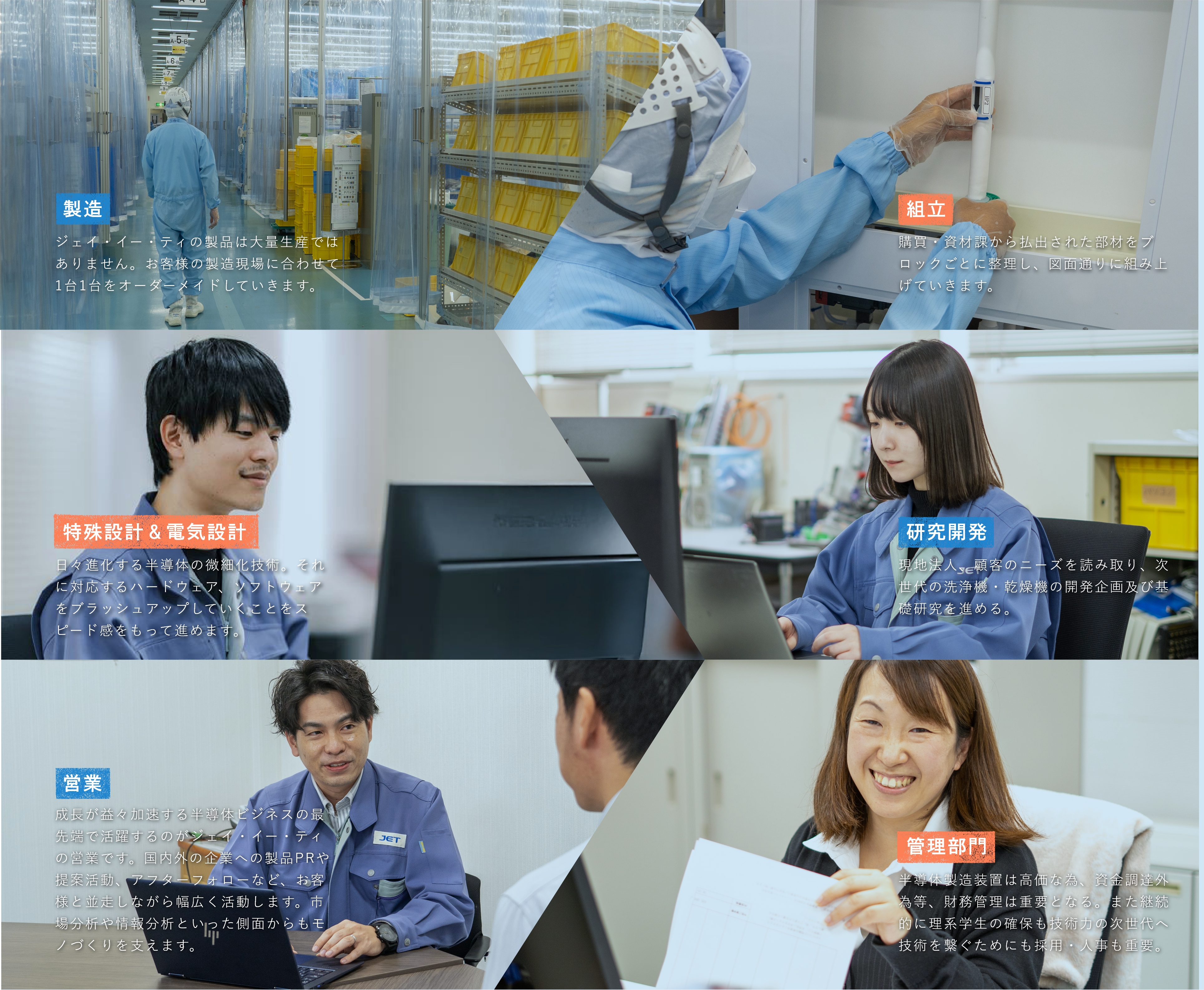 私たちジェイ・イー・ティは、この半導体洗浄という分野において、世界有数の装置メーカーとしてテクノロジーの進歩を陰から支えています。