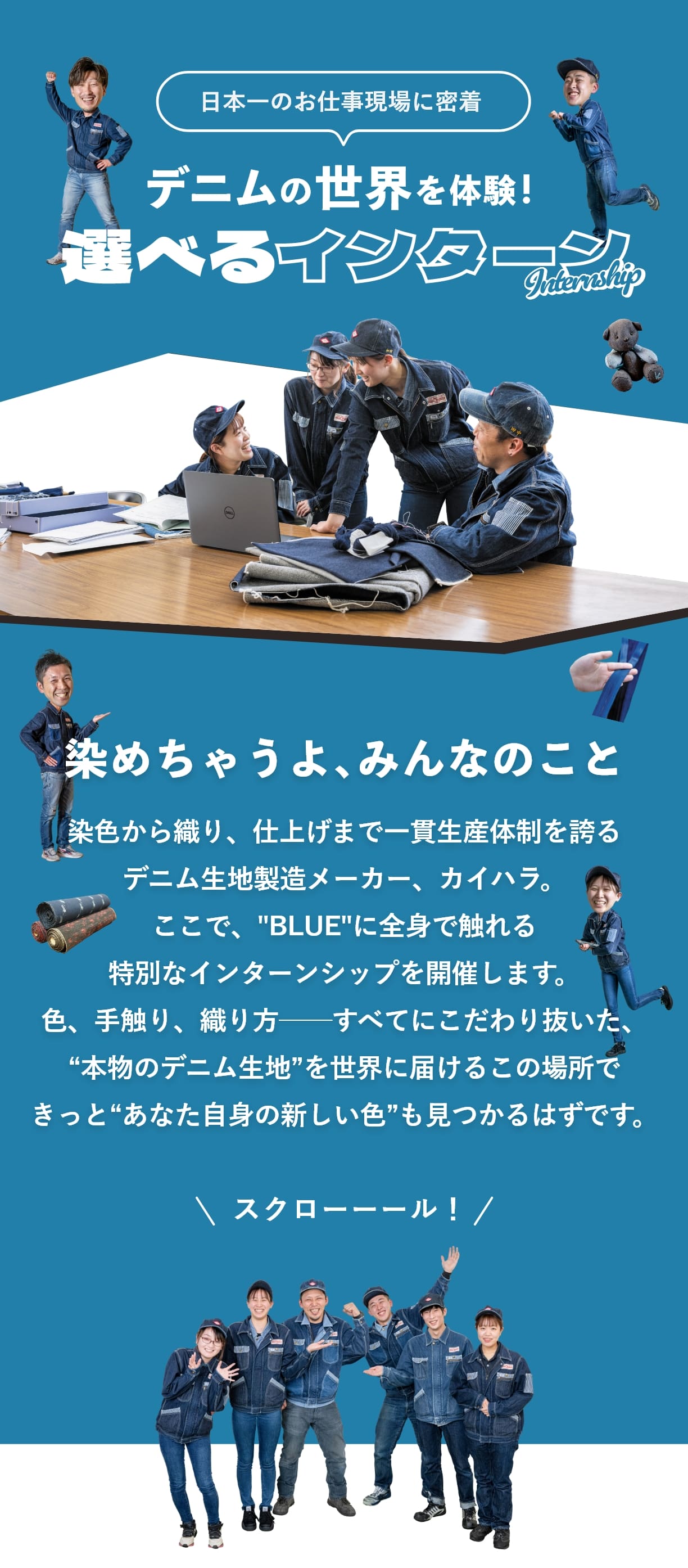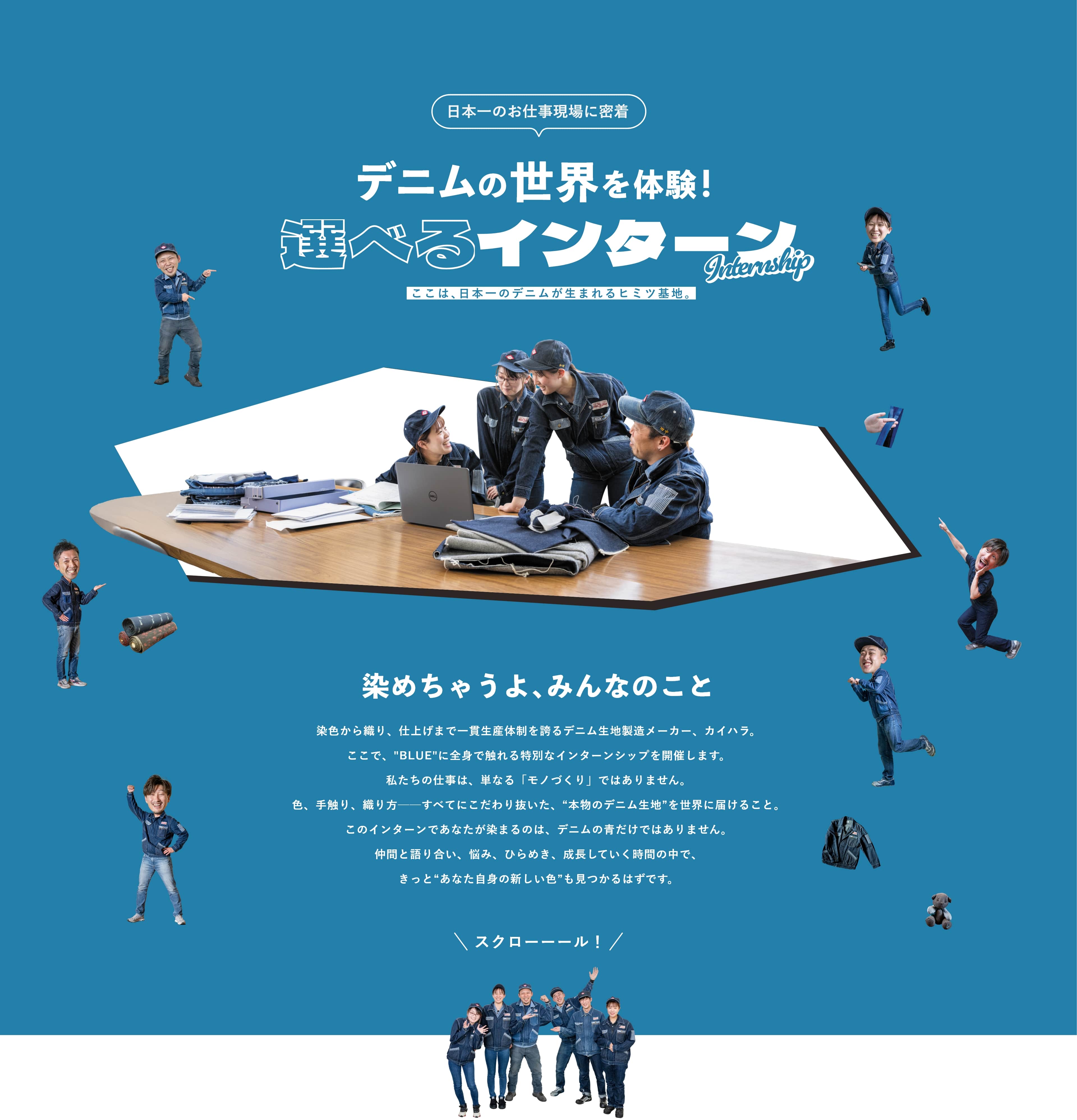 カイハラは、世界でも珍しいデニムの一貫生産工場。 実際の現場に入って、 職人さんの話を聞いたり、機械を間近で見たり。 「なんでカイハラが世界から選ばれてるの?」 その答え、直接体感してください。 就活の前に、ちょっと未来の自分をイメージできるかも。 気軽に来てみてくださいね!