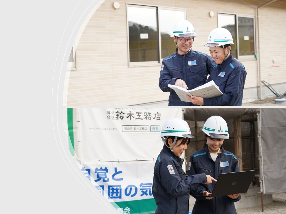 実際に現場に足を運び、設計図や施工図をもとに、専門業者さんと連携して細かく丁寧に建物を仕上げていきます。 |